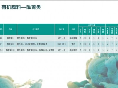 永固红2BP、808大红粉、3132大红粉、颜料橙34、金光红、金黄、酞菁蓝B、酞菁绿G、酞菁蓝BGS、化肥着色颜料、干粉灭火剂着色颜料、